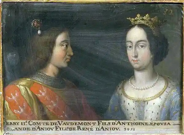 L’aînée épousa Louis de Beauvau-Craon, dont la fille unique, Isabeau, mariée à Jehan de Bourbon, sera l’ancêtre du roi Henri IV ;