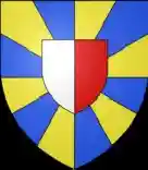 Gironné d'or et d'azur de 12 pièces, et sur le tout un écu parti d'argent et de gueules,