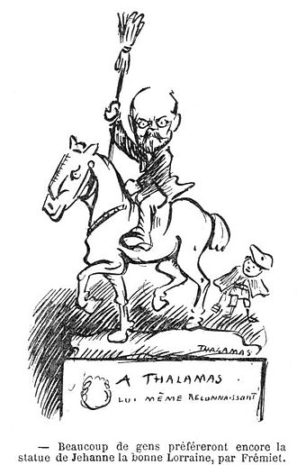 Le professeur Thalamas est brocardé par les traditionalistes, ici une caricature d'Henry Somm