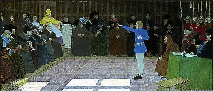 Le Grand Inquisiteur de France communique à ce procès, comme preuve de la mission divine de la Pucelle, la prophétie de Merlin l’Enchanteur qui prédit sa venue.