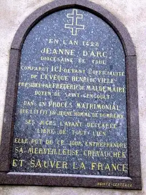 La plaque commémorant le Procès Matrimonial de Jeanne.