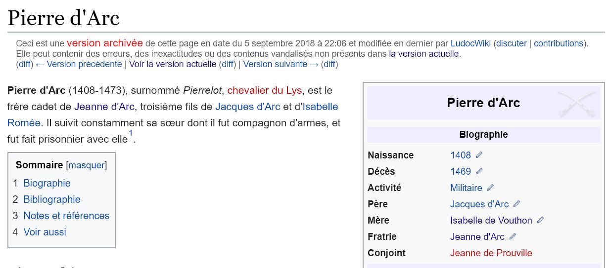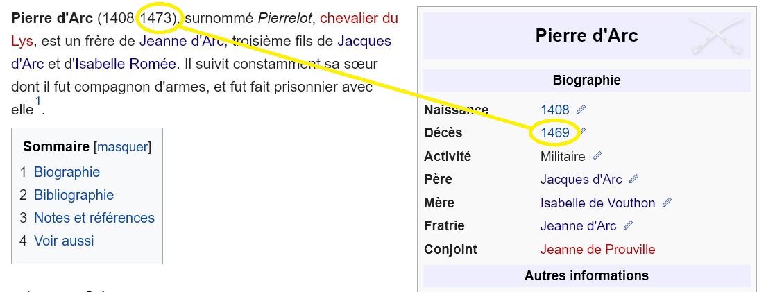 Dans le même article ( page actuelle ), Wikipedia nous donne même 2 dates de décès pour le susnommé Pierrelot :