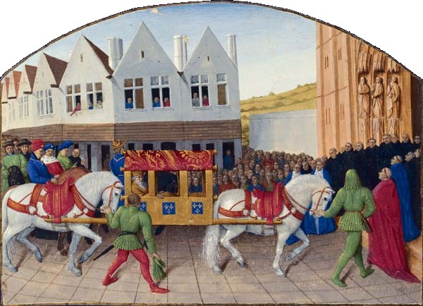 On peut alors penser qu'en tout état de cause, l'arrivée a bien pu avoir lieu aux alentours du 5 janvier ! Le bébé nait le 7 novembre... Et le 23 novembre, Louis et isabeau soupent joyeusement, ce qui implique que leur enfant est à l'abri, déclaré mort peu de temps après la naissance pour parer au plus pressé, puis confié à Valentine Visconti, l'épouse dévouée... Au sortir de ce repas, Louis est assassiné par les sbires du duc de Bourgogne.