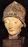 On doit également se remémorer cette tête casquée en pierre polychromée retrouvée autrefois dans les ruines d'une église d'Orléans, identifiée aussitôt comme celle de notre héroïne... Plus tard, après que des anthropologues de la police allemande ont établi de façon scientifique que c'était la même femme qui avait posé pour cette sculpture et pour le portrait de Jaulny, on ne sait par quelle grâce la tête est soudain devenue celle de Saint Maurice...