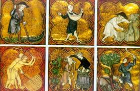Mauvais choix : la peinture de cette époque est essentiellement religieuse et n’apporte pas une documentation de poids sur le sujet. D’autant que la mention "moyen âge" couvre une période très longue (plus de mille ans) et que toute documentation ne peut englober l’ensemble de la période, ni couvrir les aspects régionaux, multiples et variés (cette variété est encore de mise de nos jours, malgré une uniformisation rampante que chacun peut identifier).