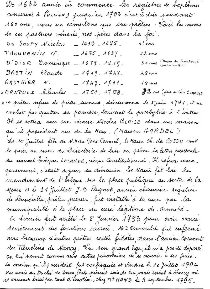 Dans une correspondance du 22 janvier 1960 ( dont nous possédons copie ), l'abbé Jean Henry, alors curé de Sauvigny, petit village sis non loin de Domremy, écrit à son confrère de Pulligny :