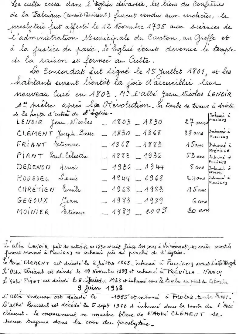 Nous avons donc là un témoignage particulièrement intéressant quant à une date d'intervention des émissaires du Vatican dans l'église de Pulligny !