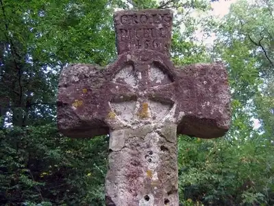 Un lecteur nous communique : On retrouve le même type de croix que les inscriptions de Pulligny sur un monument érigé en forêt de Saint Germain par Jean de Dunois en 1456, appelé la Croix Pucelle...