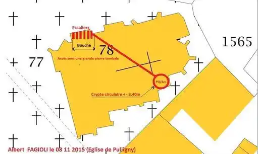 M.L est un ancien de Pulligny, et il s'est toujours intéressé à l'histoire locale... Il nous rapporte une curieuse anecdote. Une vieille dame du village, la " petite " Marie M. née aux alentours de 1900, lui avait raconté qu'enfant, elle s'aventurait dans un escalier en colimaçon situé sur la droite de l'entrée de l'église. Celui-ci menait à une crypte... Qu'on aurait comblée à cause d'une montée d'eau...? Ne serait-ce pas là l'entrée du souterrain découvert par notre ami Fagioli
