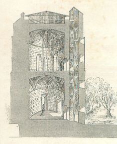 Dans la vue ci-dessus, le réduit dans l'épaisseur de la muraille, l'escalier et l'accès au puits.