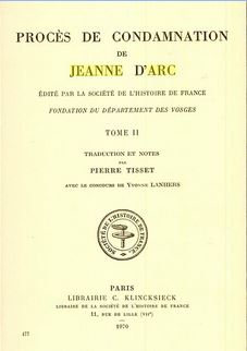 Procès de condamnation de Jeanne d'Arc, édité par la société de l'histoire de France, fondation du département des Vosges, Tome II