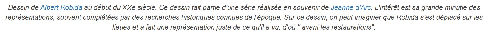 Juste un détail ! Le site a été " restauré " entre 1820 et 1823, et Albert Robida a vécu de 1848 à 1926... C'est dire s'il a pu se rendre sur les lieux avant leur restauration !