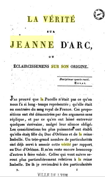 Caze consolide son argumentation en 1819 dans " La vérité sur Jeanne