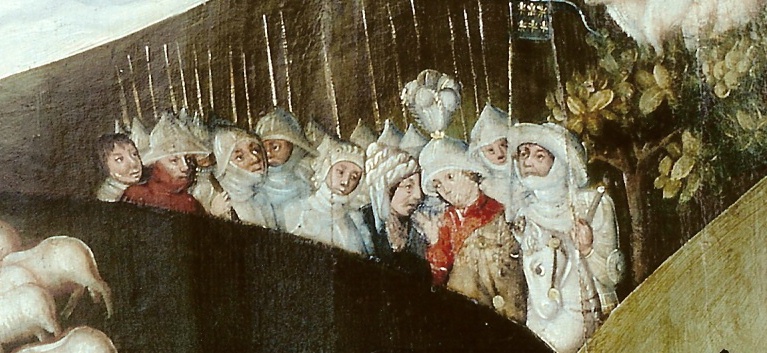 Je ne pense pas être très loin du sens qu’a voulu y mettre le peintre. Néanmoins, il reste à savoir ce qu’il a voulu exactement dire. N’oublions pas que dans ce genre de peinture narrative c’est la somme de toutes les petites scènes qui prennent un sens à la lumière les unes des autres.