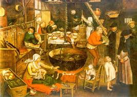 Les soupes et bouillies semblent tenir la meilleure place dans les menus quotidiens. Un inventaire des "outils" ou instruments propres à la cuisine montre des grills, des couteaux, des piques à deux dents pour manier les morceaux de viande à rôtir, des vases propres à verser de la sauce lors de la cuisson à la broche … La présence de ces objets n’est pas fortuite, elle manifeste la variété des préparations culinaires, au-delà des descriptions souvent compassionnelles, propres à éveiller de la pitié chez le lecteur (et, par là même, permettre une réflexion sur les temps présents, pas si délétères que cela à tout prendre). Le cas du pain mangé par Jeanne entre, ce me semble, dans ce cadre là....