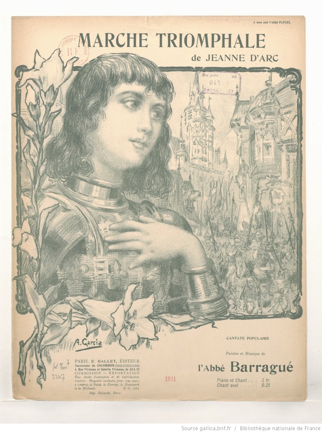 Son « ode à Jeanne d'Arc » (paroles de Paul Héraud) date de la Belle époque où prédominait l'esprit de vengeance contre le vainqueur d'hier. Temps de dépit autant que de jalousie, le tout teinté de colère, du sentiment d’incapacité, face et à l’égard de l’étranger venu, en 1871, « casser » la belle image d’un pays constatant, éploré, sa fragilité. Inutile d'aller chercher plus loin l'appel à Dieu pour qu'il « délivre la France entière ». Allusion claire aux « provinces perdues », celles figurant en noir ou en violet sur les cartes murales de nos écoles. Nous ne connaissons en réalité plus grand chose de l'atmosphère de ce temps qui peut nous apparaître, un siècle plus tard, comme teintée de fanatisme outrancier.