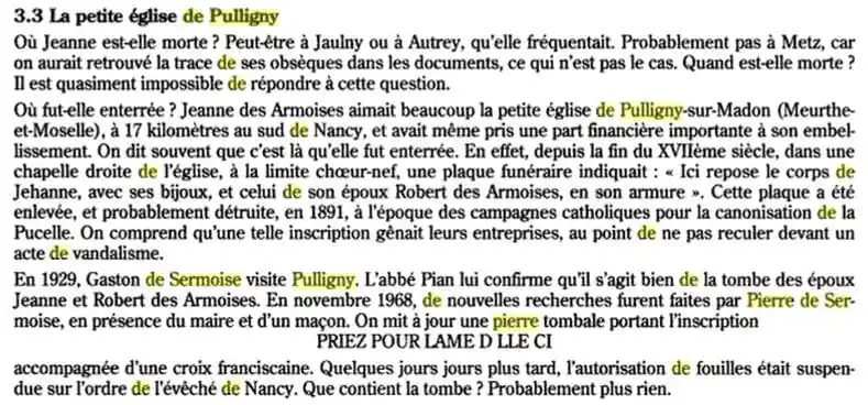 Il en découle que dire que l’église de Pulligny a contenu la sépulture de Jeanne des Armoises ne peut que relever de l’imagination " .