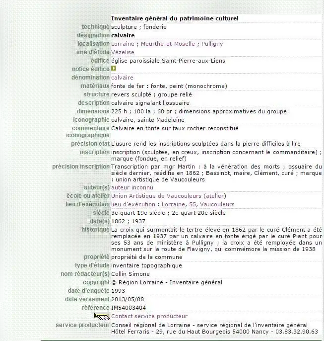 D'ailleurs,dans l'ouvrage de l'Abbé Eugène Martin, " Pulligny, étude historique & archéologique ", publié en 1893, on trouve le passage suivant :