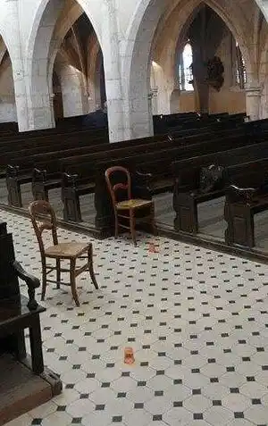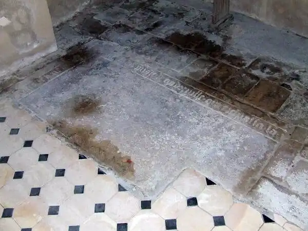 Une fidèle de notre site nous informe avoir découvert sur le sol, du côté gauche, dans le chœur de l'église, la trace d'une pierre tombale en partie masquée par le carrelage .