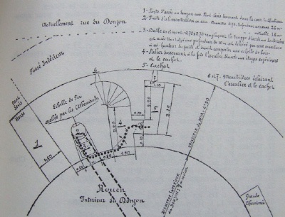 Dans la vue ci-dessus, le réduit dans l'épaisseur de la muraille, l'escalier et l'accès au puits.